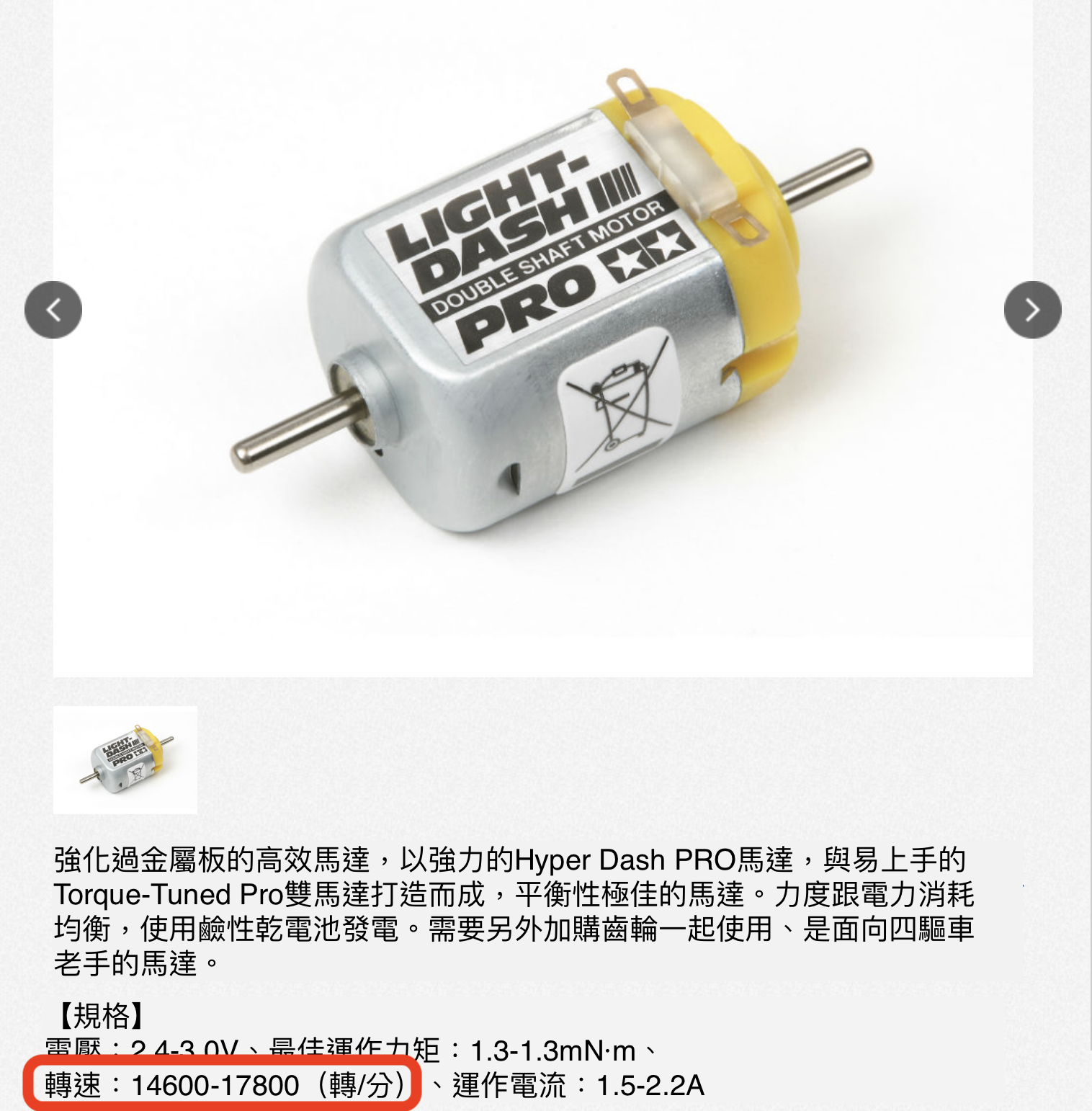 ▼看看它的商品介紹,每分鐘14600-17800轉,雖然對四驅車沒有研究因此不是很清楚,但是這個轉速光用看的都覺得很不妙啊!