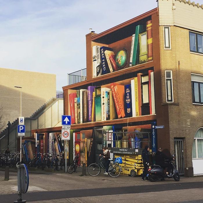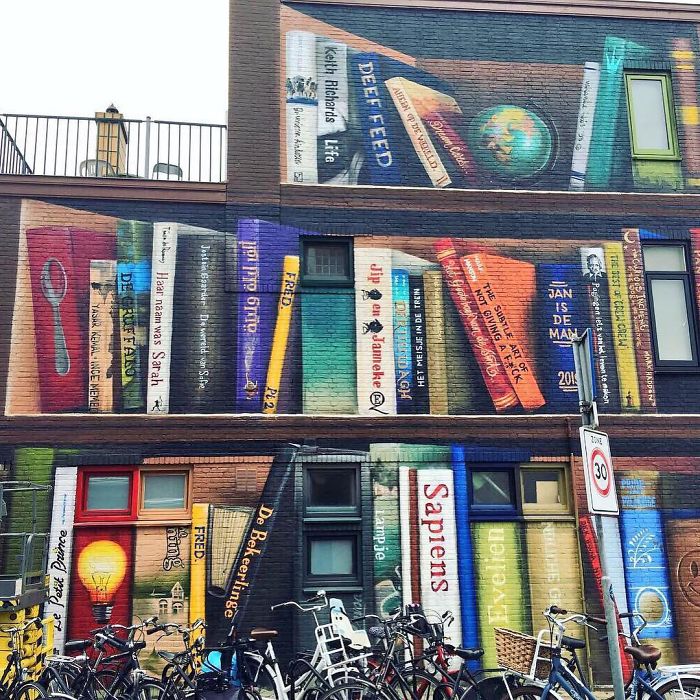 2019年04月11日我們經常看到國外的街頭藝術家改造廢棄建築,用塗鴉等方式讓破舊的老建築煥發出新的光芒。荷蘭街頭藝術家迪夫·費德(Deef Feed)和簡·迪曼(Jan Is De Man)就對一處三層公寓進行了改造,將其變成了一個多層次的書架,驚艷作品獲得網友大讚。