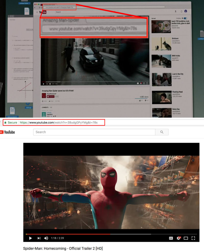 ▼10. 《蜘蛛人:返校日》有一幕是彼得帕克在看影片,仔細一看網址…那其實是該電影的預告片!