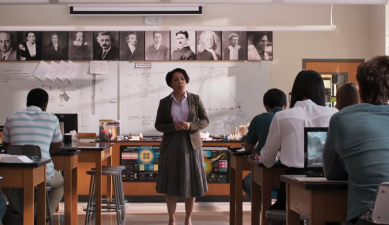 ▼2. 在《蜘蛛人:返校日》有一幕是老師上課時的畫面,背景上最右邊的那一幅肖像其實就是飾演班納博士(浩克)的馬克盧法洛!