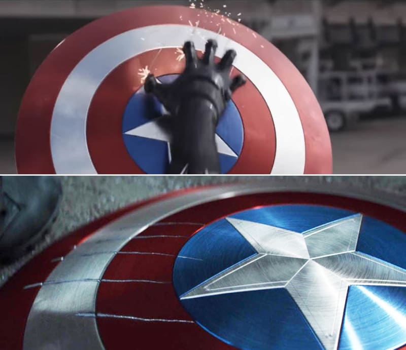 ▼9. 美國隊長的盾牌上有一個顯眼的抓痕,那其實是黑豹的爪子抓過的!因為兩者都是用汎金屬製作,所以能夠產生影響。