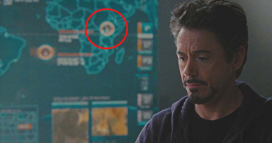 ▼1. 《鋼鐵人2》有一幕是東尼史塔克身後的螢幕有地圖,標示著的位置就是黑豹所在的瓦干達!