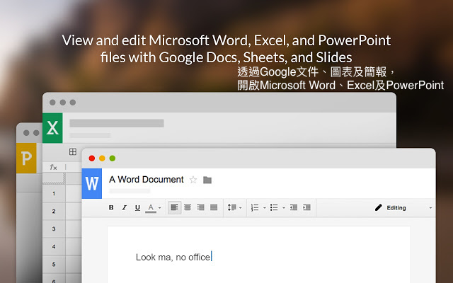 ▼Google在「Chrome線上應用商店」推出「Office Editing for Docs, Sheets & Slides」擴充功能,支援在Chrome上面直接編輯Word、Excel、PowerPoint等Office文件,再也無需透過轉換檔案格式的方法來開啟。