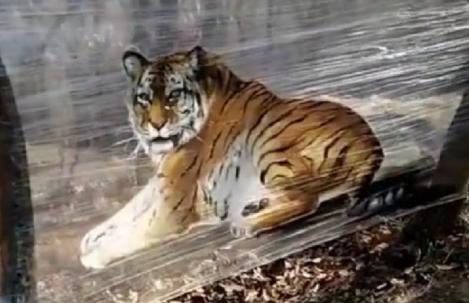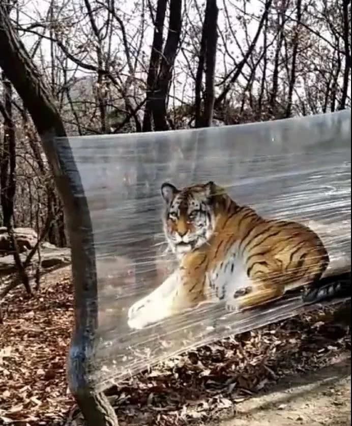 ▼願挨這些野生動物,竟然是列印在保鮮膜上的動物畫像,這樣的創意實在值得給予掌聲!