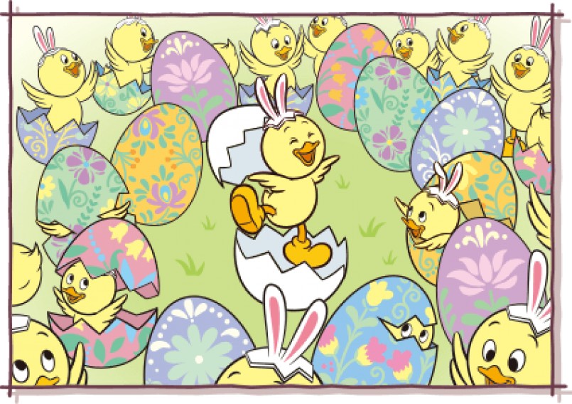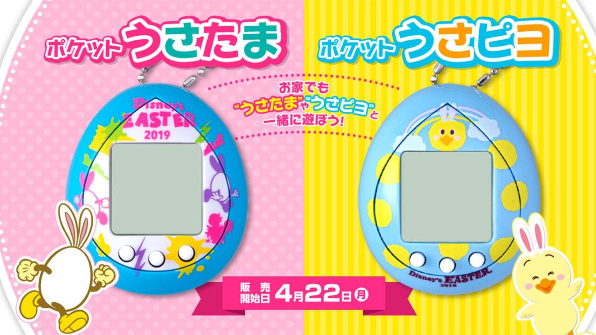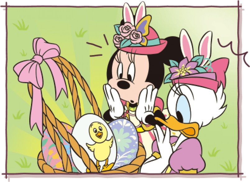 ▼兔耳小雞(うさピヨ)的誕生故事也非常有趣!米妮和黛西在裝飾復活節彩蛋時,發現其中一顆彩蛋上有「黃色小雞圖案」,於是他們在這小雞圖案上加了兔耳朵,忽然間帶著兔耳朵的黃色小雞就從復活節彩蛋中誕生了!大家也很開心多了這位新家人!