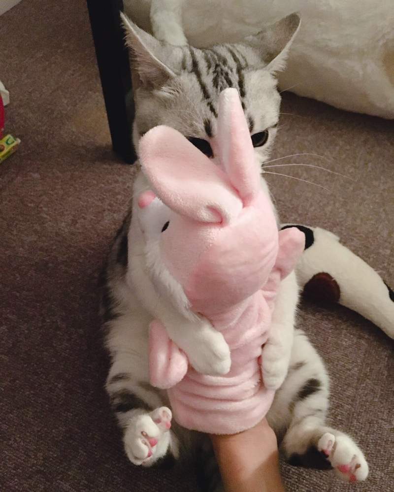 ▼馬麻表示這個兔兔手偶其實是貓咪小時候的玩具,但是玩膩之後就收起來放了很多年。