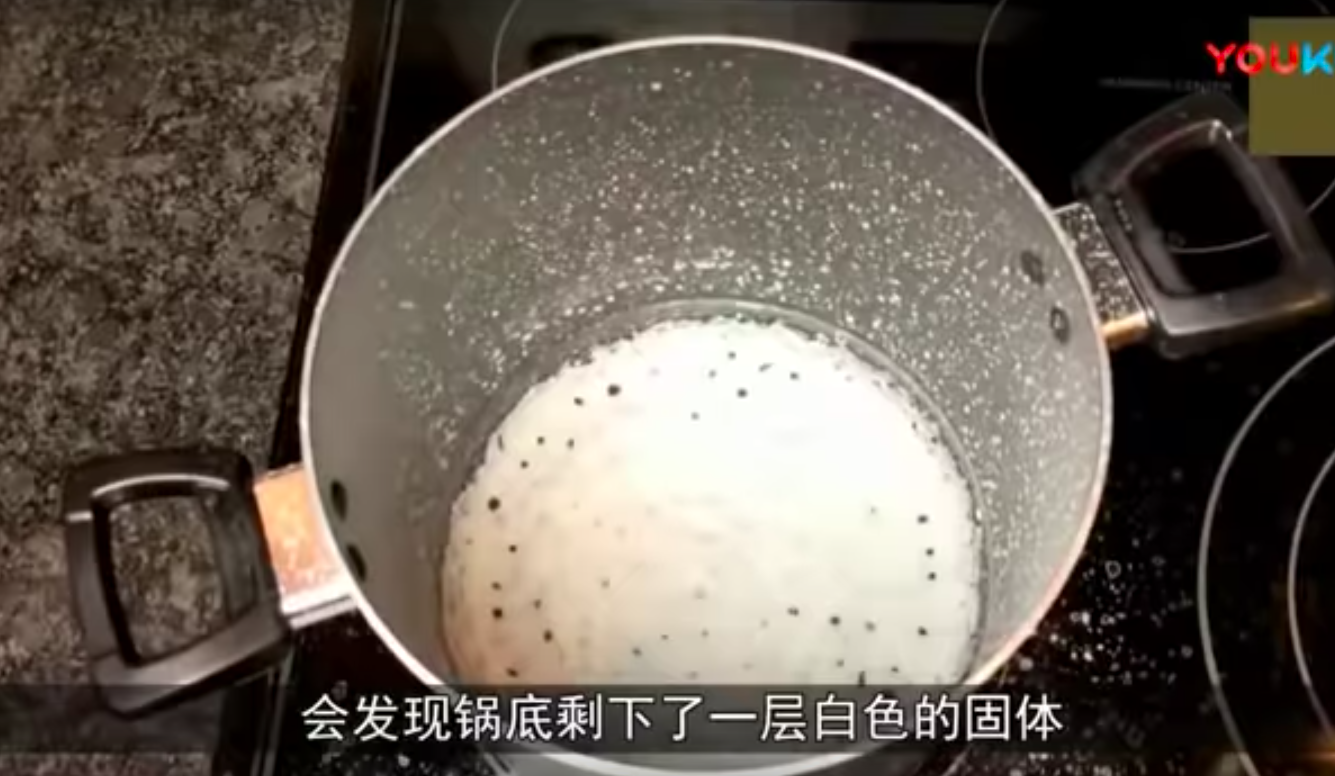 ▼鍋中剩下很多鹽,這些海鹽與我們平時做料理用的食鹽不同,裡面有硫酸鹽等對人體有害的物質。