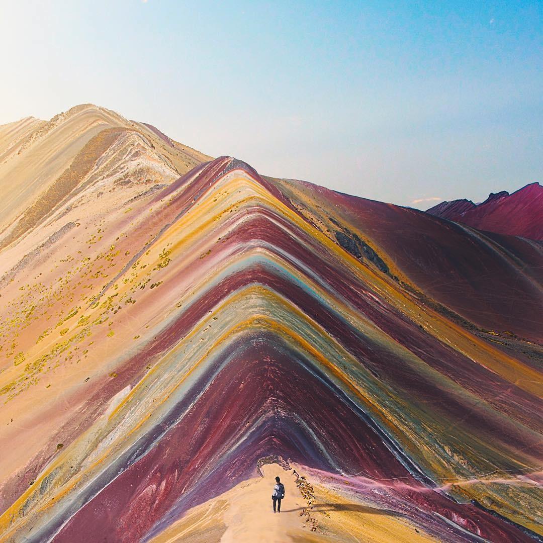 ▼彩虹山位於南美洲秘魯的庫斯科 (Cuzco),海拔5200米高,山脈上色彩繽紛又井然有序的條紋,猶如一道不會消失的彩虹。