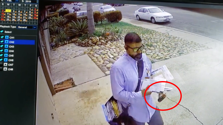 2019年04月19日美國加州一名男主人Alfonso Galindo發現家門口總是有莫名其妙的「污漬」,而且他們很疼愛的狗狗也會突然趴地上不斷打滾,好幾次後覺得事情不單純,於是就特別在大門處裝了監視器來查明真相。結果,原來這一切都是每天送信的郵差在搞鬼!