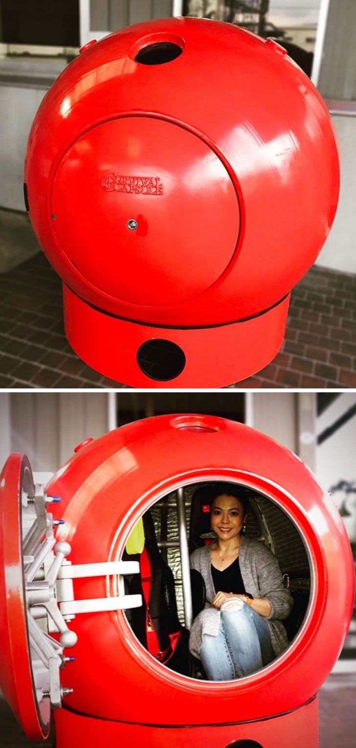 ▼遇到自然災害時的逃生艙,裡面可以容納2至10個成人,配有每人最多5天的食物、水、燈光、GPS、通風孔、音樂和廁所。