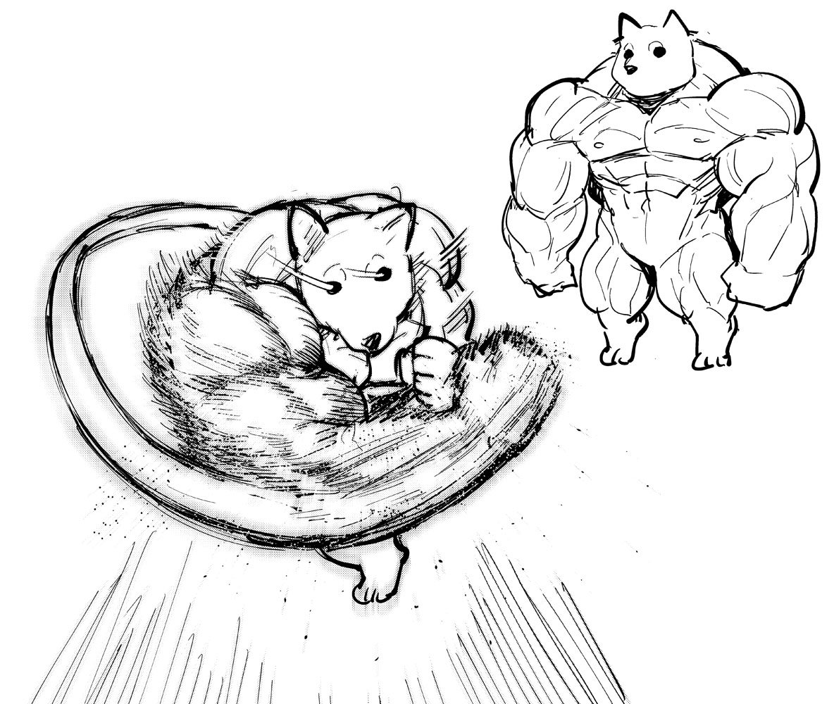 ▼畫師們筆下的「右勾拳柴犬」,都有壯碩的二頭肌,還有凌厲的眼神。