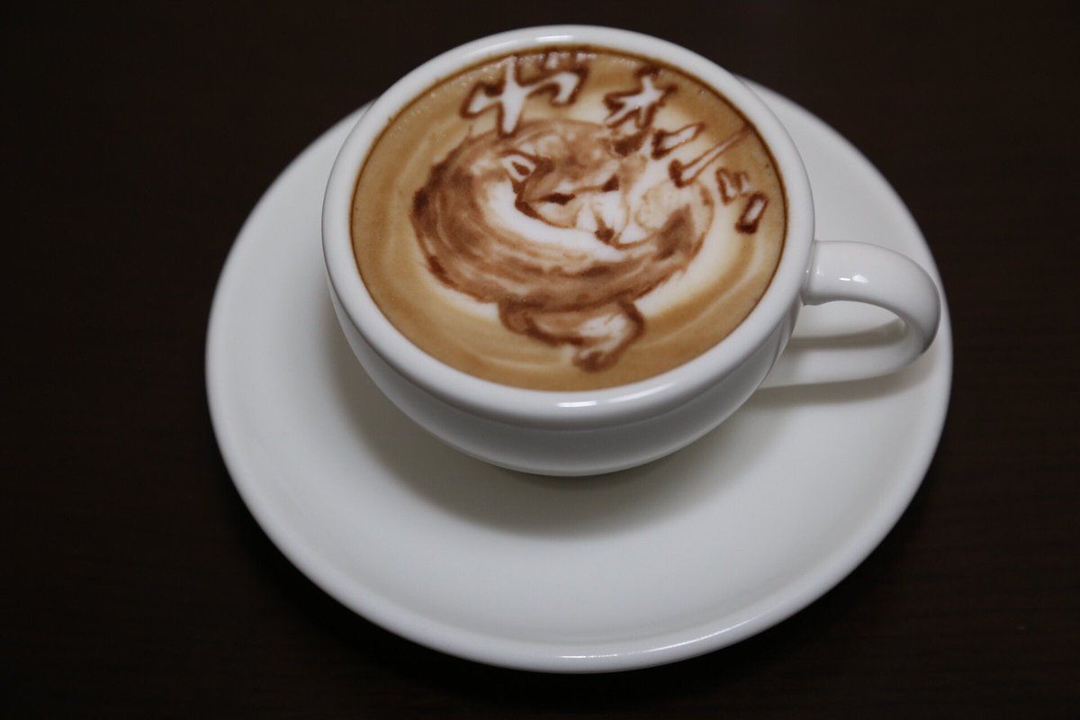 ▼「右勾拳柴犬」變成咖啡拉花,也是很棒的裝飾呢。喝下這杯咖啡,能夠得到無與倫比的力量嗎?