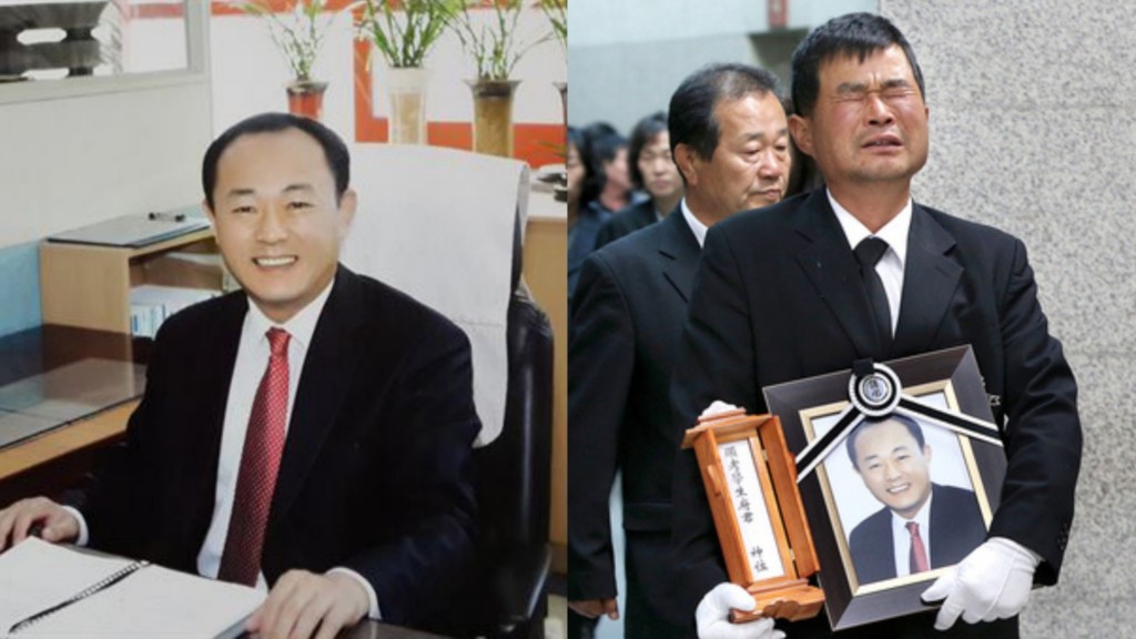 有別於其他老師,姜副校長當時拯救了船上20多位乘客,最後自己也逃了出來。雖然低血糖導致身體虛弱,他還是撐著在體育館裡幫忙後續處理工作。但事發3天後,姜副校長選擇上吊離開這個世界,他指出是自己推薦到濟州島旅行的,他無法面對在200多條生命下落不明時,自己獨活。