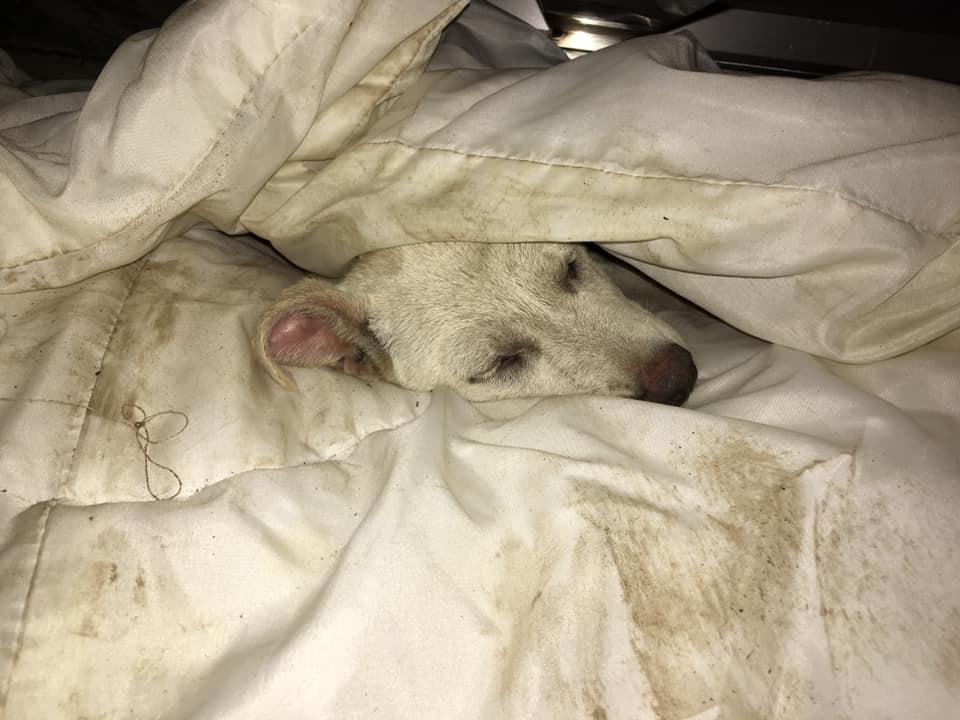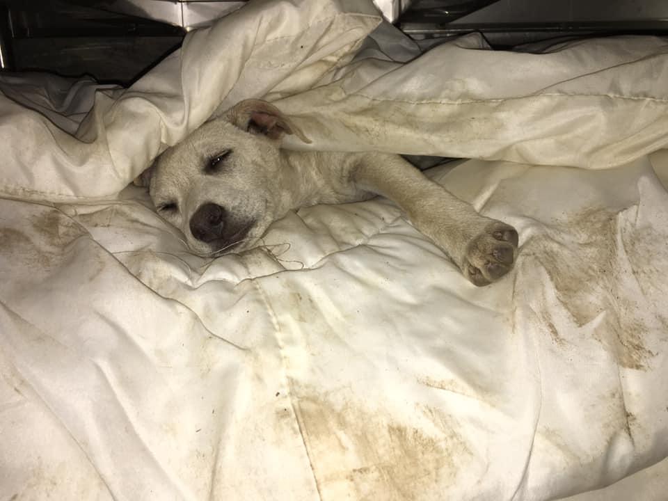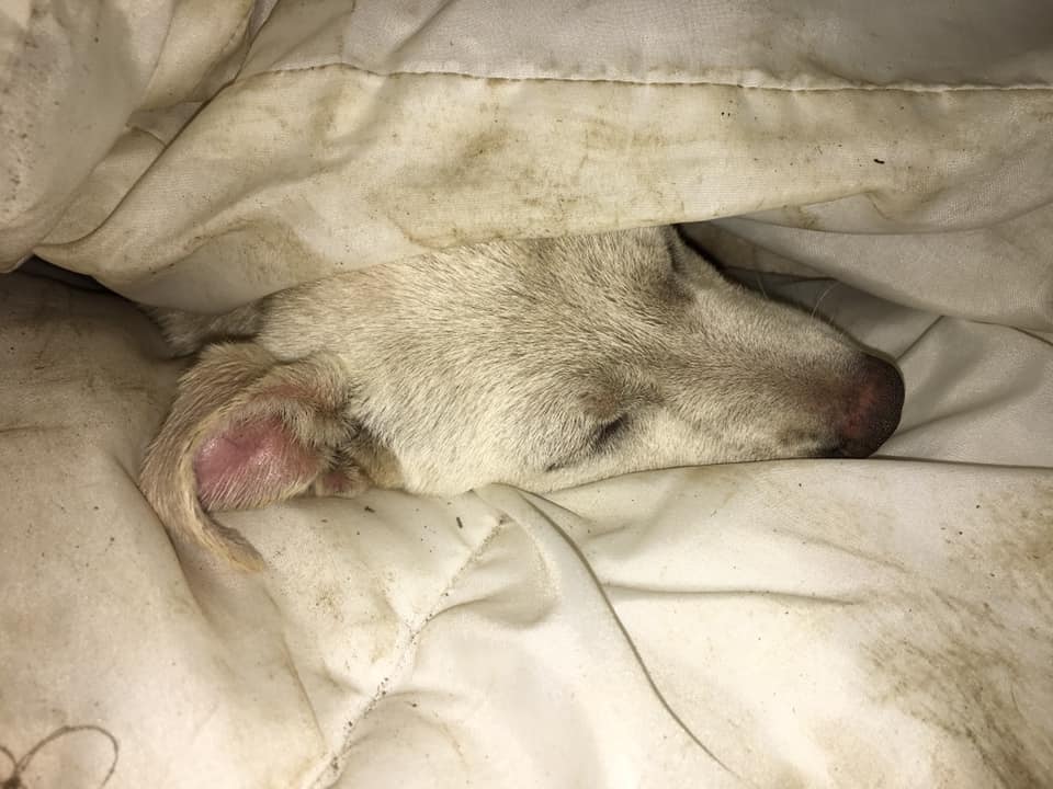 ▼然後…全身泥巴的牠馬上就鑽進被窩裡,讓好心人也只能愣住看著床單、棉被被弄髒。但是看到小白狗獲得溫暖,安心到瞇著眼睛快睡著的模樣,卻又讓她完全無法生氣~李貞儀表示這隻小白狗其實是她救回來的五隻狗狗之一,「牠們應該是被媽媽的主人惡意丟棄在台東森林公園活水湖,當時我請通報人先送至台東愛犬獸醫院治療,之後安置在狗園,由我照顧牠們成長。」