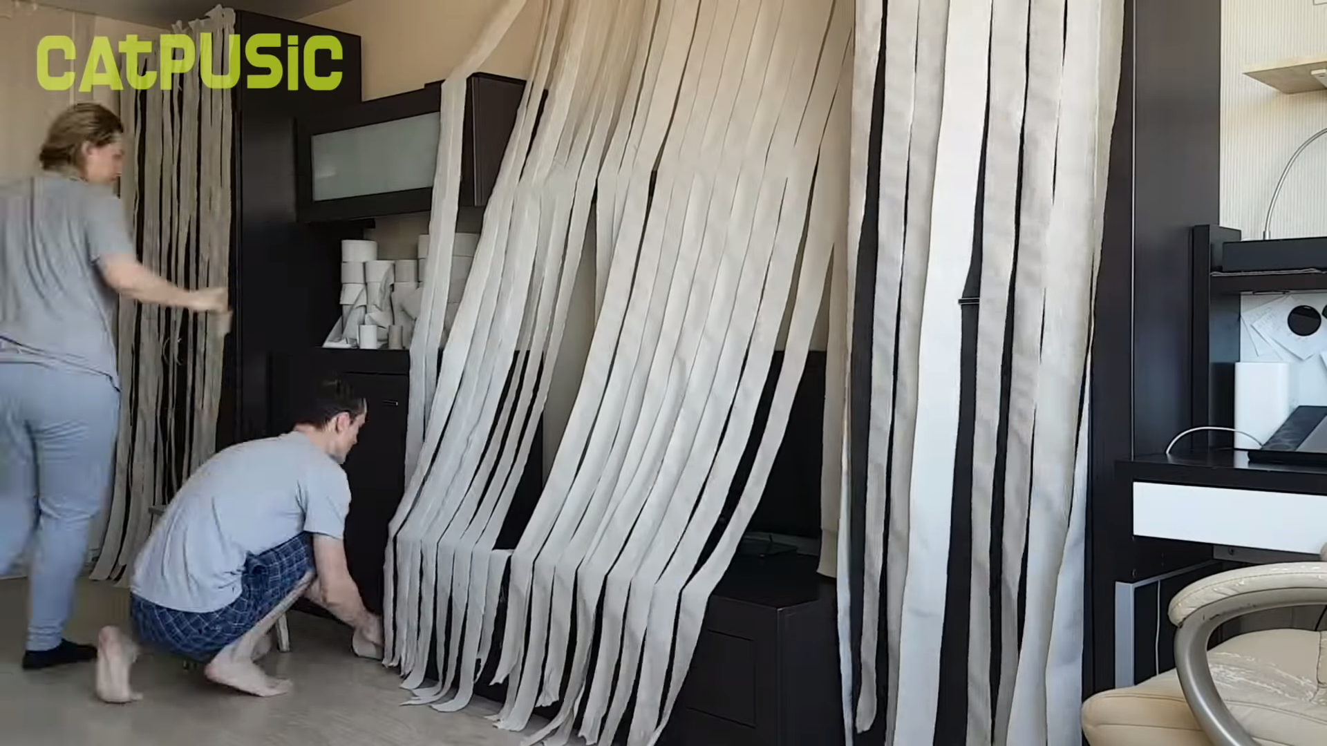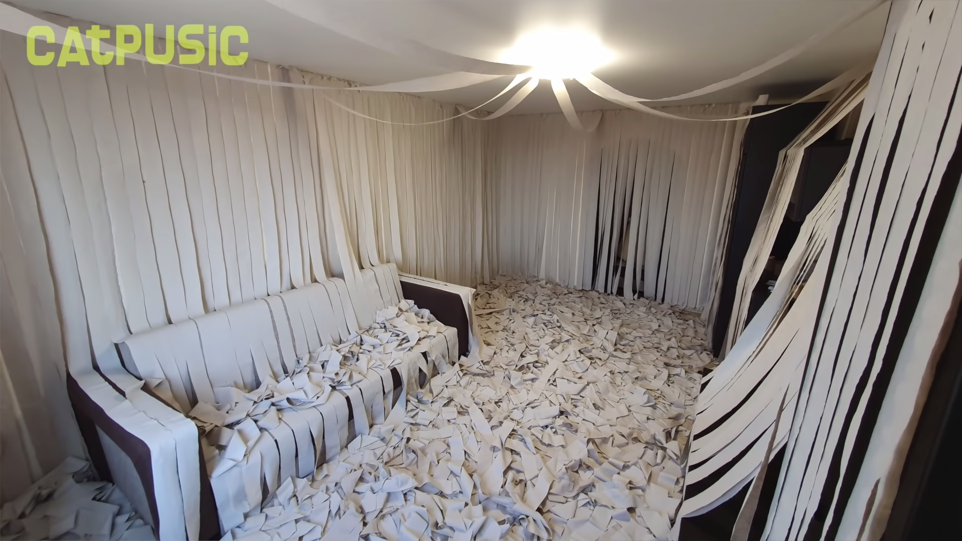 ▼他們到賣場買回了足足100捲衛生紙,要把整個房間佈置成貓咪天堂。