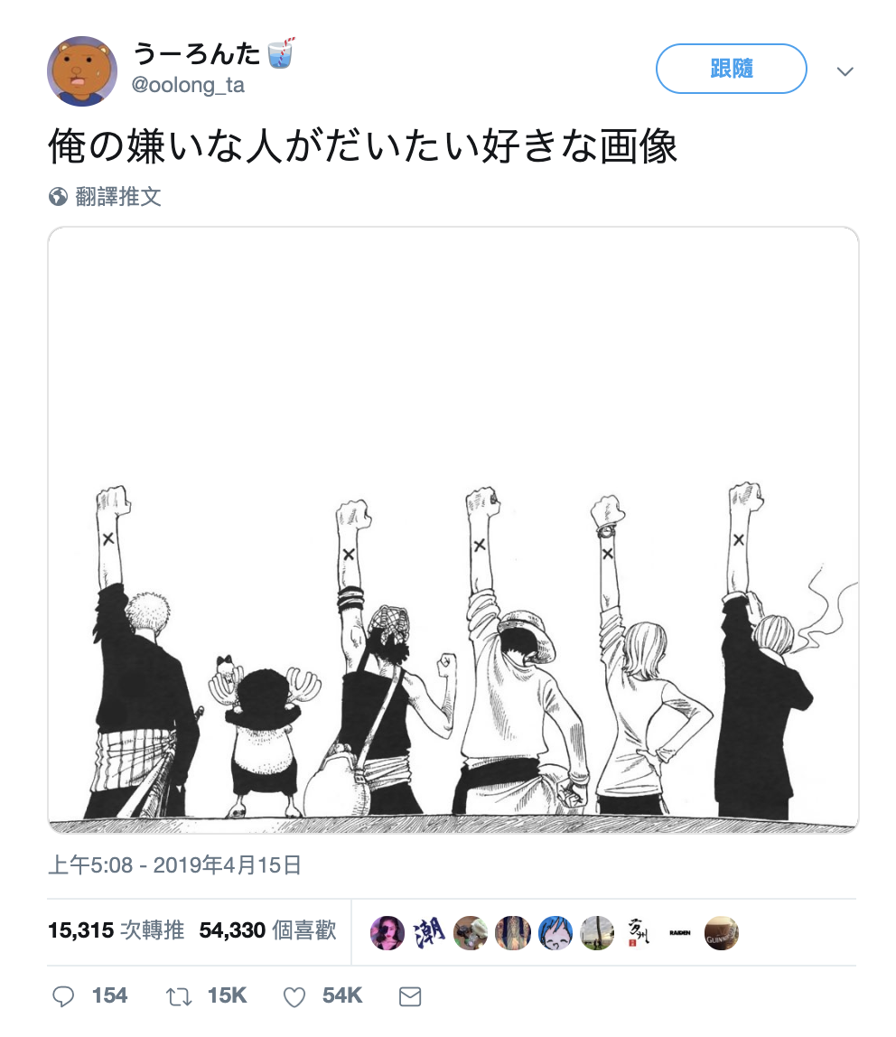 ▼網友發推表示「討厭的人都愛這張照片」,主要因為許多人都喜歡《航海王》,所以在出遊的團體照都會擺出像草帽海賊團一樣的手勢拍照。