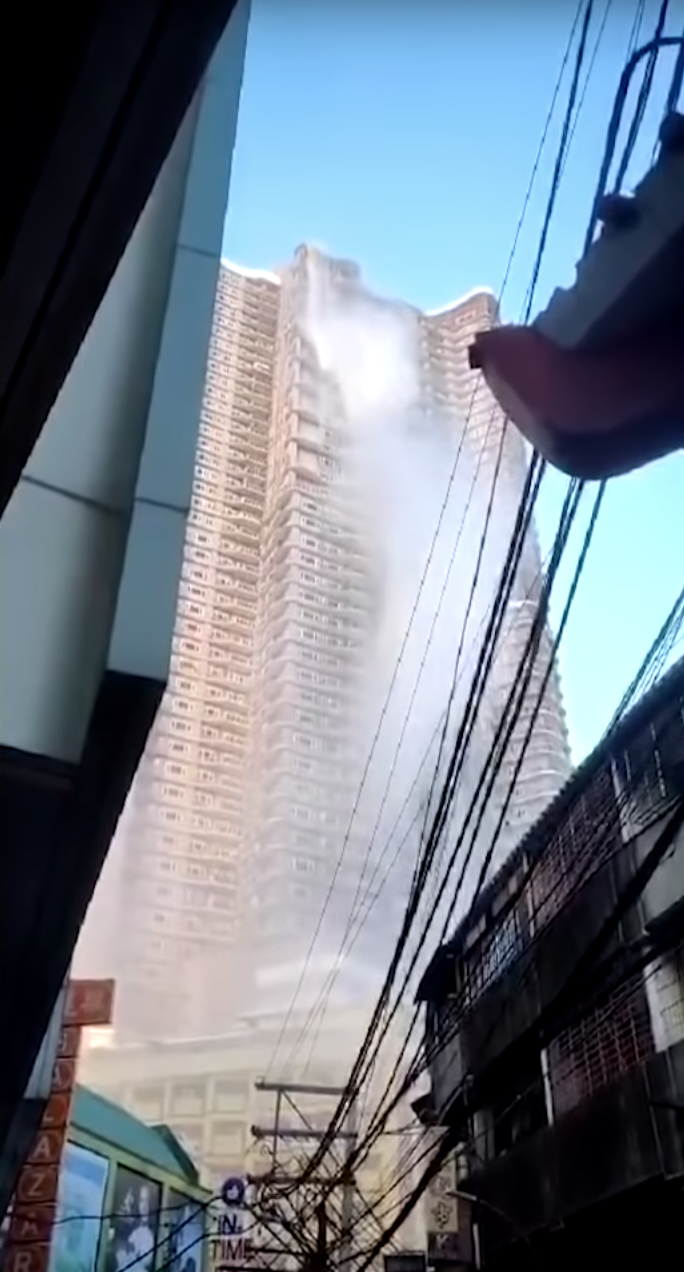 大自然直接讓大樓裡面的水像瀑布一樣外洩,整個畫面看起來真的有夠驚悚。這樣的天空瀑布真的不希望再看到,也為菲律賓祈禱,希望大家都可以平安沒事啊!