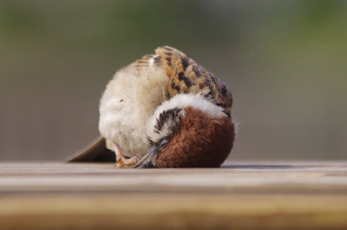 ▼照片中的麻雀身體依偎在木頭上,側頭半瞇著眼睛,微微張開嘴巴,看起來像是累壞了。這幅厭世的模樣讓上班族們心有戚戚焉,忍不住說:「拍得太寫實了,根本就是我的人生寫照!」
