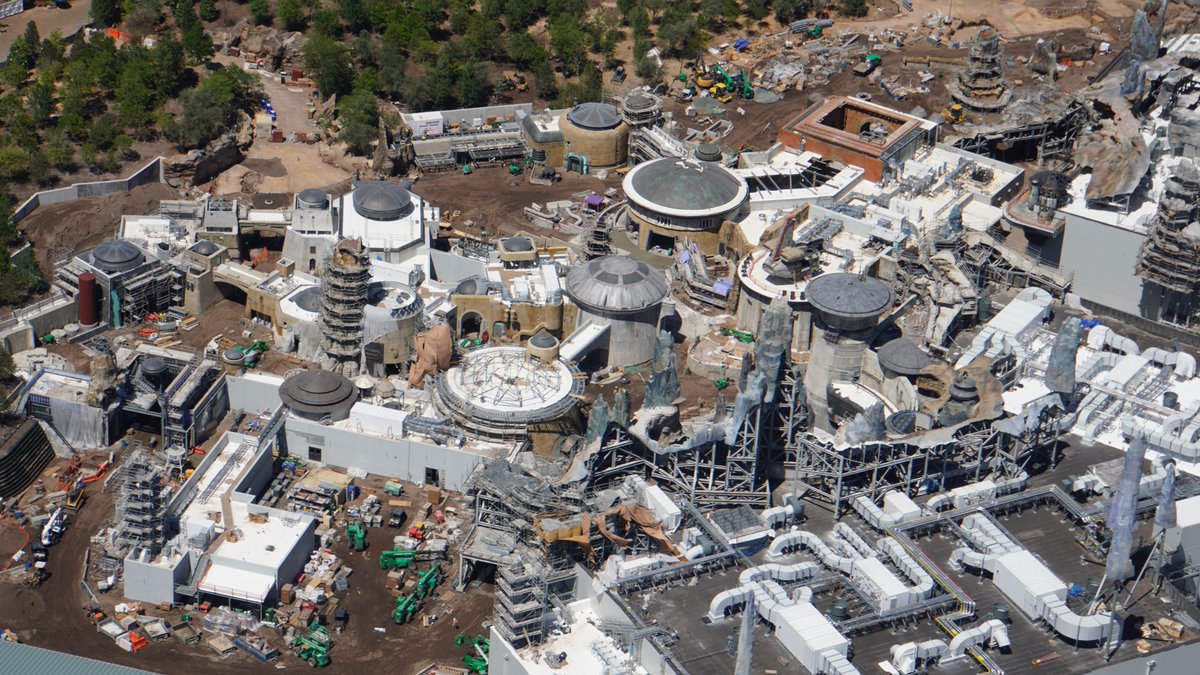 ▼星際大戰園區將在8月29日於佛羅里達州的奧蘭多迪士尼開幕。通過鳥瞰圖可以清晰看到園區的建設進度,工程機械車忙忙碌碌。形形色色的設施很有科技感,而且規模宏大。