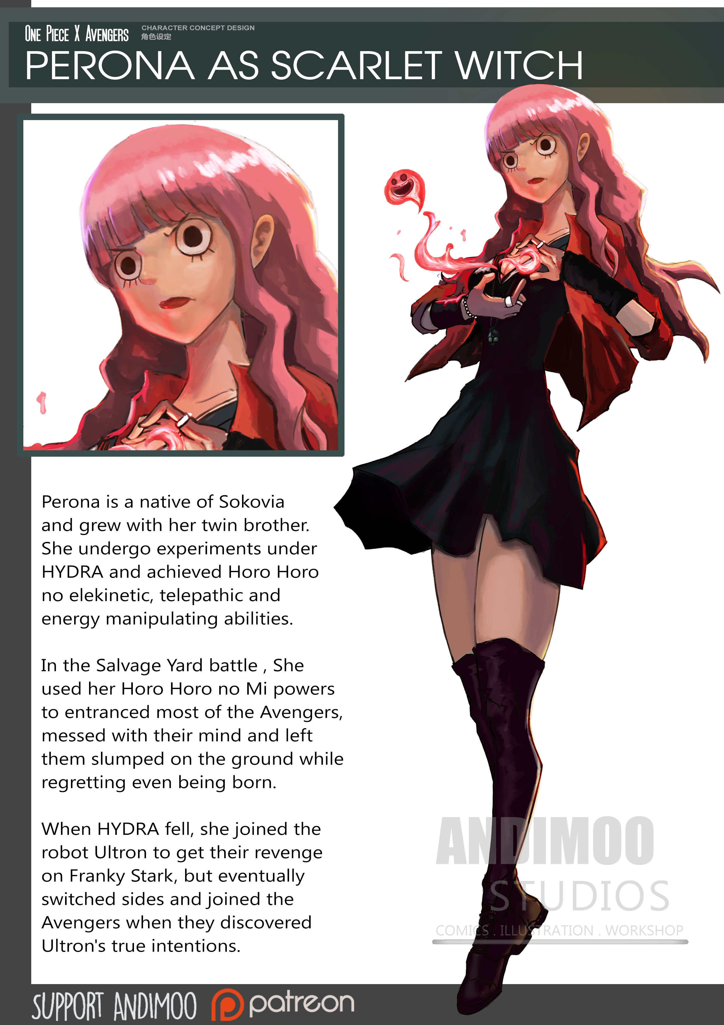 與雙胞胎弟弟一起成長的蘇科威亞人,經過九頭蛇的人體試驗後獲得了控制人心的能力。曾經與奧創合作想要向鋼鐵人報復,不過發現奧創的真正目的是毀滅地球後,她加入了復仇者聯盟一起捍衛地球。
