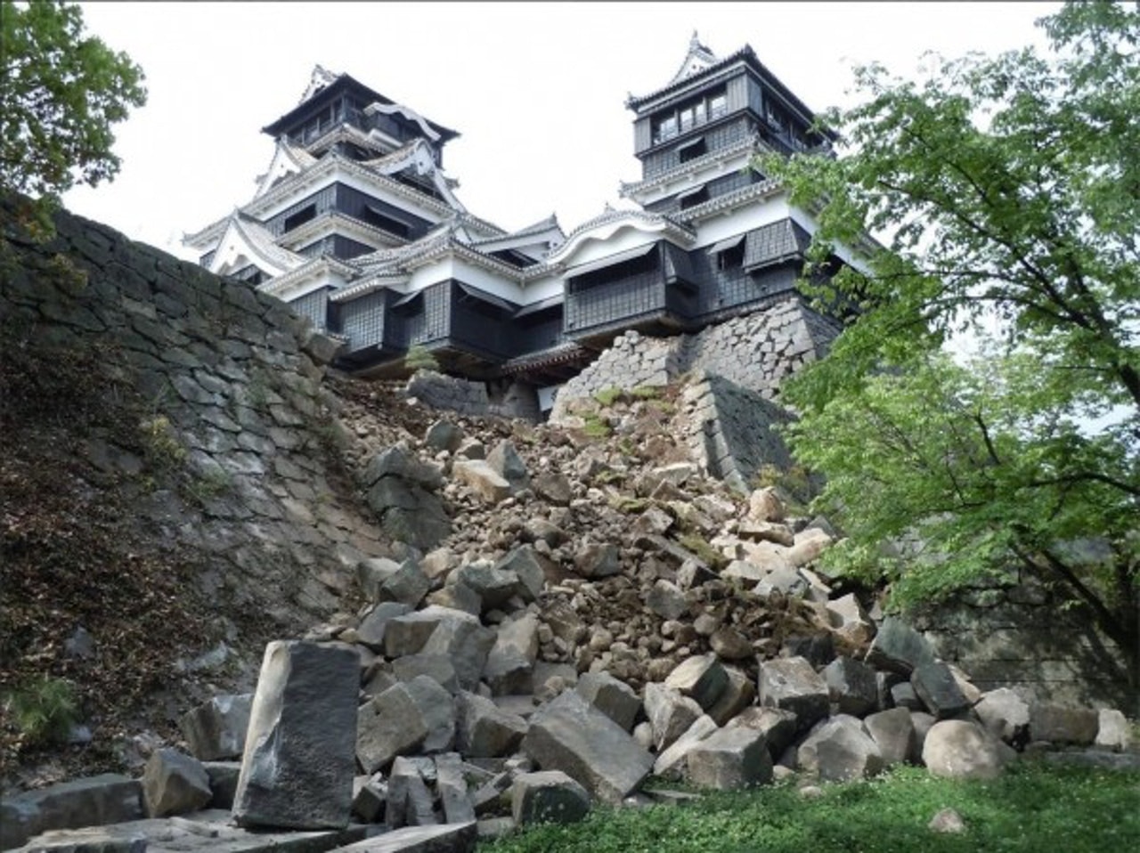 ▼2016年的熊本大地震震央就在熊本,也讓位於附近的熊本城崩陷。周圍的石牆崩塌,共計有13項文化遺產嚴重毀損。