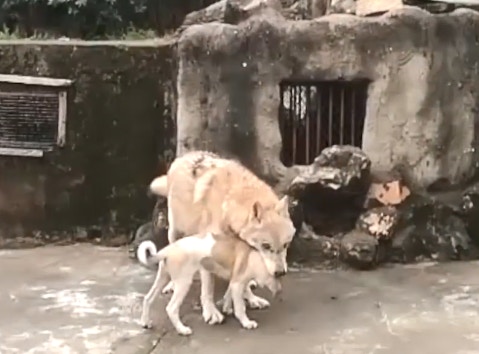 2019年05月08日根據中國媒體報導,有遊客上週六(5/4)到武漢九峰山森林動物園參觀,發現狼窩裡竟然有一隻白色狗狗在散步,卻四處都看不到狼的身影,便拍影片po上網質疑園方欺騙遊客,結果動物園的解釋卻讓大家都意想不到:牠們是情侶啦!