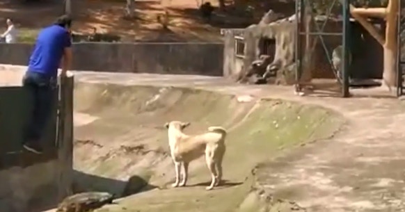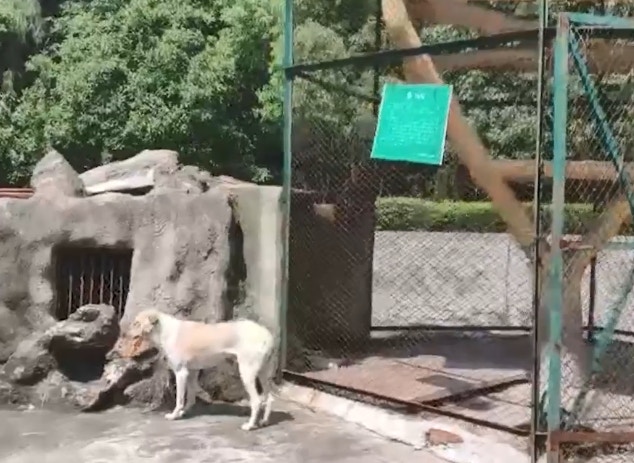 ▼網友到動物園參觀,卻發現在狼的區域裡的是一隻狗、根本沒看到狼的身影,當下認為被騙,便拍下影片上傳網路。