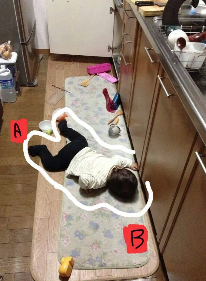 ▼有時候連爸媽也跟著瘋~索性弄成案發現場算了!