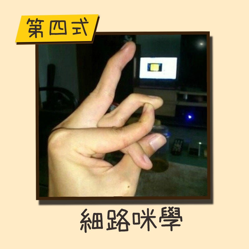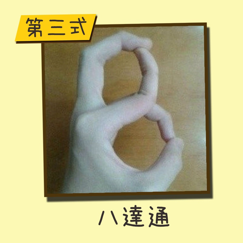 ▼第三式:難度突然升級,誰會把手指頭扭成「8」啊?!
