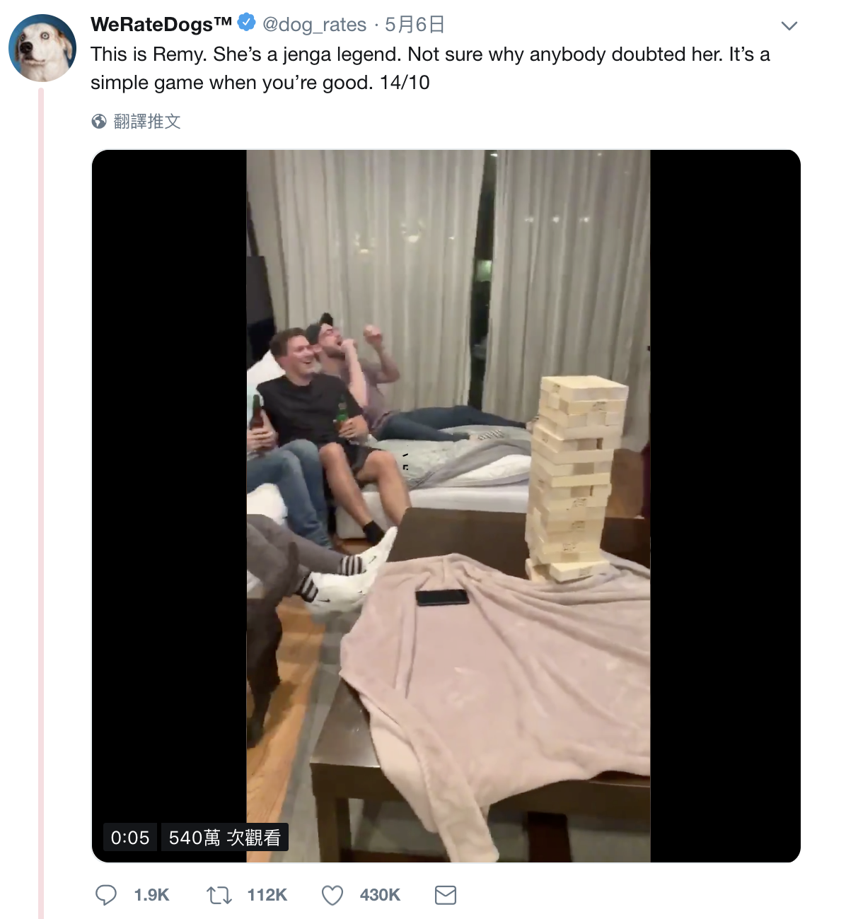 這隻狗狗也太強了吧!看看牠熟練的手法,還拿最底層的積木,簡直玩得比我還厲害啊!'