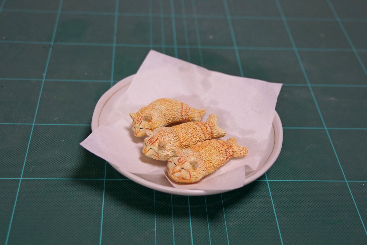 ▼推特上時常製作模型的神人「めーちっさい」也看到了這隻可愛的貓貓,馬上就做出炸蝦貓了!
