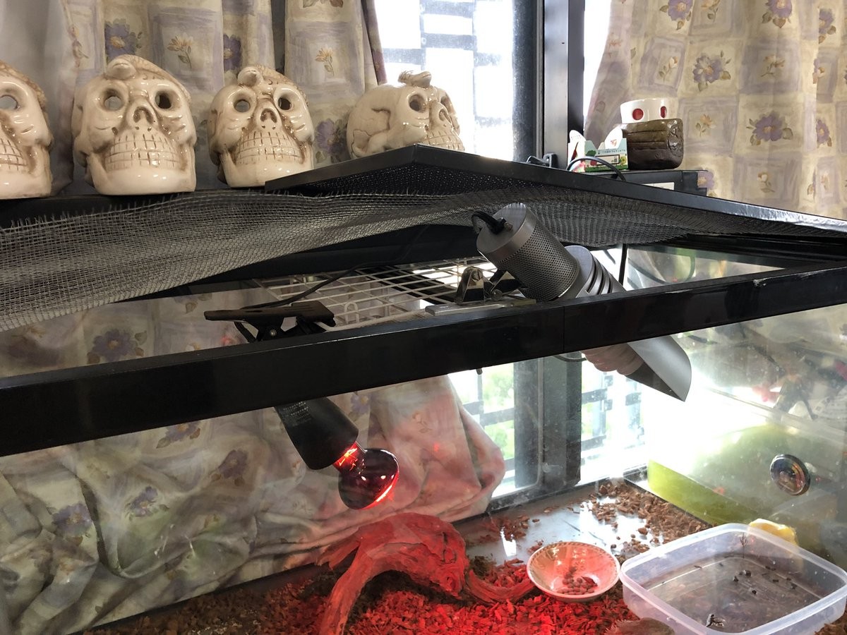 ▼為了保護鬃獅蜥,ASCOT在爬蟲箱上加了防護措施,用類似紗窗的細網封住箱口。不知道這能不能擋住靈巧的貓咪呢?