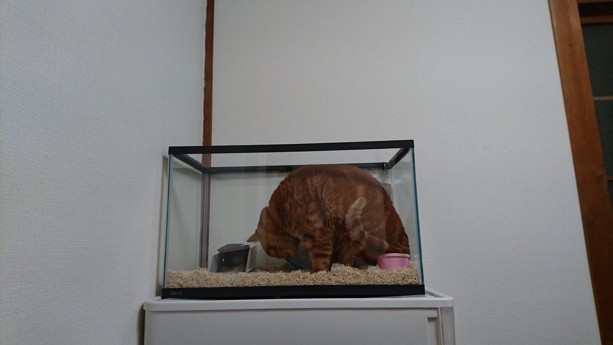 ▼ASCOT表示,前幾天沖繩的早上有點冷,貓咪可能覺得爬蟲箱裡比較溫暖,就從上面跑了進去。