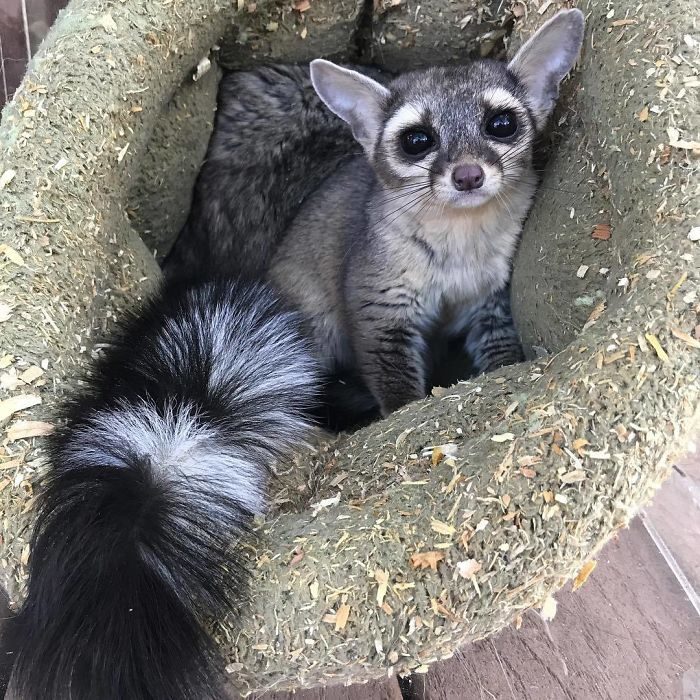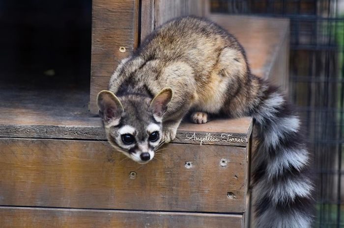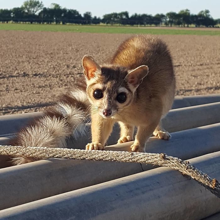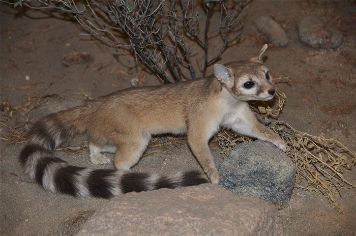 ▼在某些地區,蓬尾浣熊會出沒在礦坑附近,並且以礦坑中的老鼠等嚙齒類動物為食,因此也被稱為「礦工貓(miner cat)」;有些地區則習慣稱牠們為「麝香貓(civet cat)」,因為當牠們受驚時,會像麝香貓一樣從肛門腺排出臭氣,以嚇阻敵人。