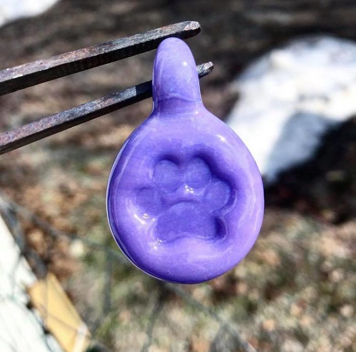 ▼他們用少量的動物骨灰和玻璃製作成唯美的玻璃藝術品,就如下面的小腳掌造型,讓主人可以隨身攜帶,就像是愛寵一直陪伴在身邊。