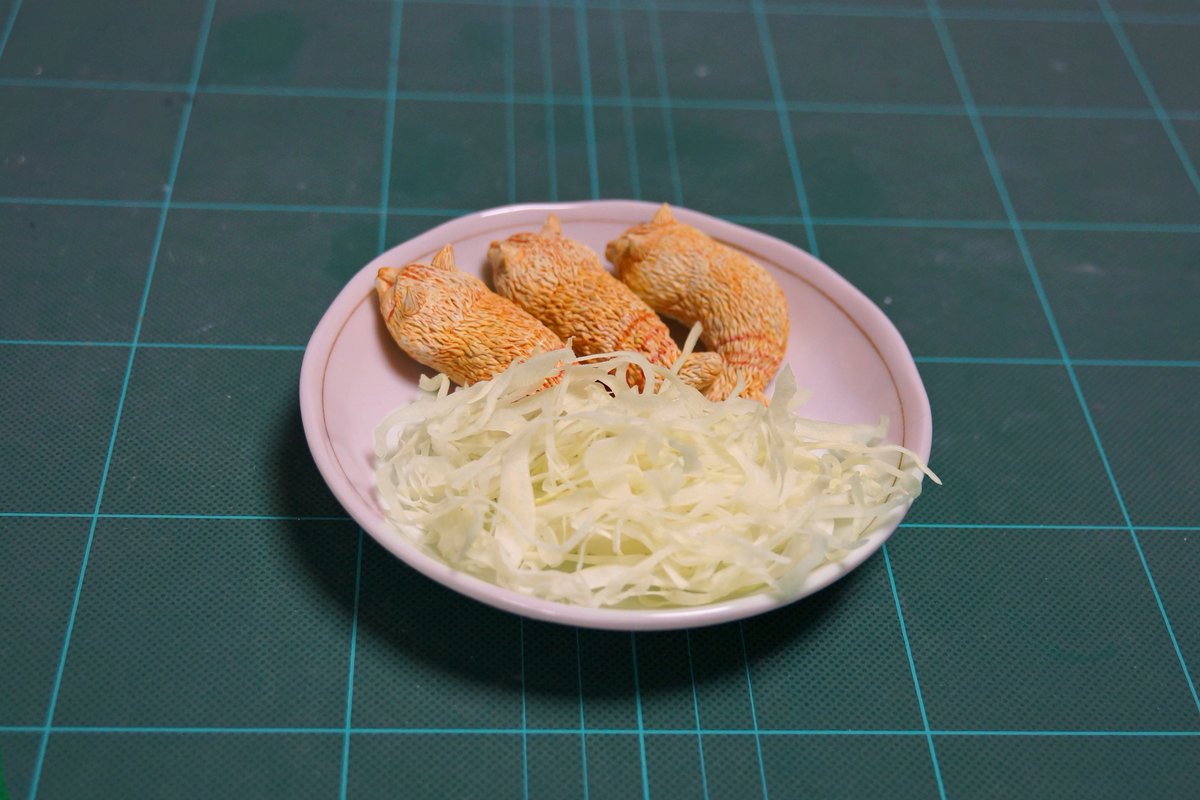 ▼めーちっさい在推特上寫道「橘貓有時候會變成炸蝦,因為很可愛就做了這個」。照片中他的模型作品將橘貓完美神還原!
