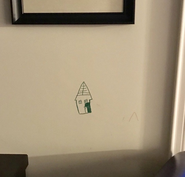 ▼小孩在牆壁亂畫?將他的作品錶框起來。