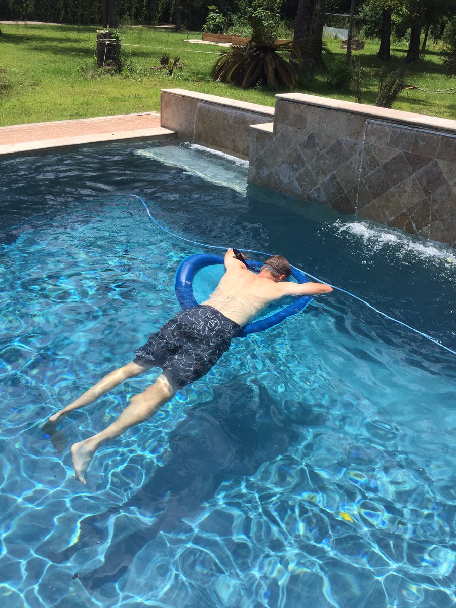 ▼為了在泳池中打瞌睡,爸爸買了一套浮潛裝置。