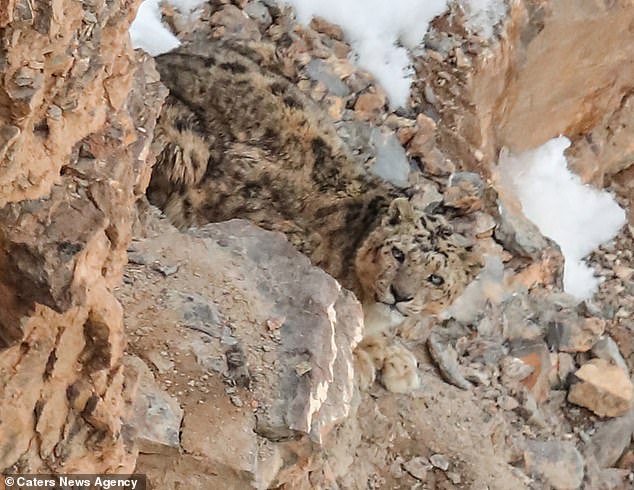 ▼攝影師索拉布·德賽(Saurabh Desai)表示「為了尋找這世界上最神秘的貓科動物的踪跡,我特意去了海拔最高的村莊『基巴村』附近的山谷。在這個距離村莊8公里外的山谷裡,我們看到了這只隱身的雪豹」。