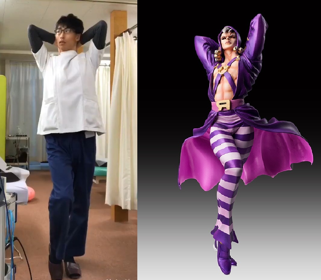 ▼第三招是《JoJo的奇妙冒險》中的里蘇特涅羅(Risotto Nero)的招牌登場動作!