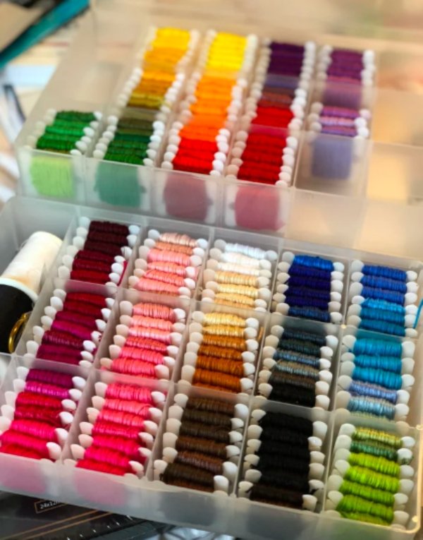 ▼他將織毛線的各種顏色都排列整齊了!
