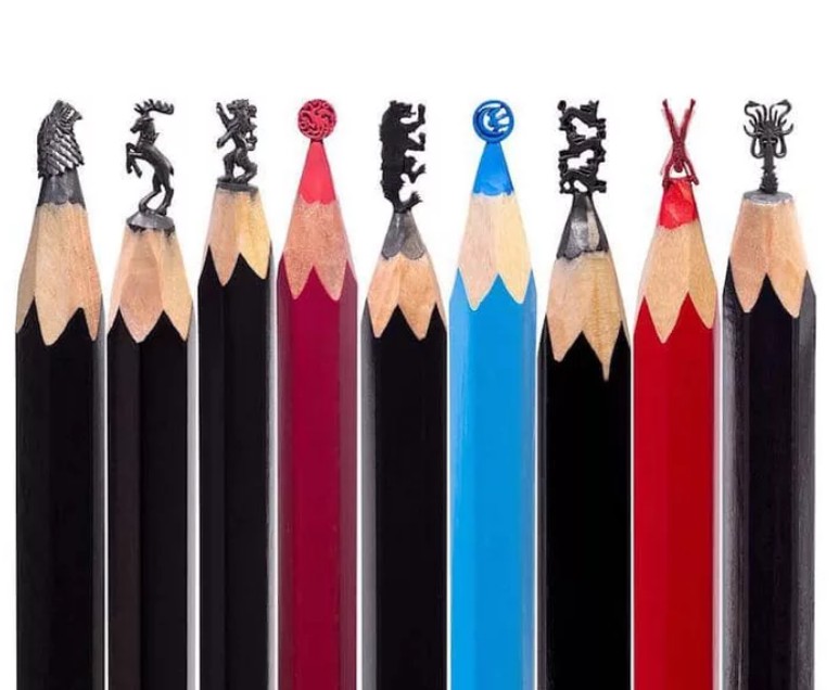 2019年05月22日世界上有著許多神乎其技的藝術家,總是可以想出各種能夠利用的素材來打造各種令人驚艷的藝術品,這位來自俄羅斯的藝術家 Salavat Fidai 就是其中之一。他利用 X-ACTO 刀片將鉛筆作為雕刻的對象,雕塑出 HBO 影集《權力遊戲》中的人物、家徽、動物等代表性的作品,作品精細得必須用放大鏡才能看得清楚!