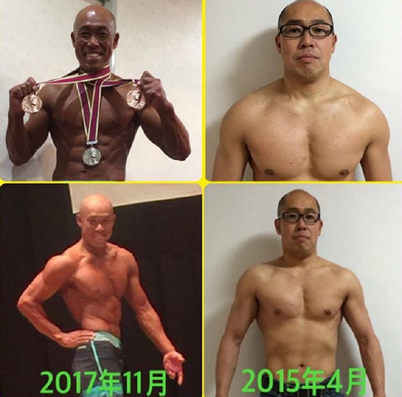 ▼如今他經常參加各種健美比賽,名次也保持在前10名內,也在最近的東京健美錦標賽中獲得40歲以上組別的第四名。