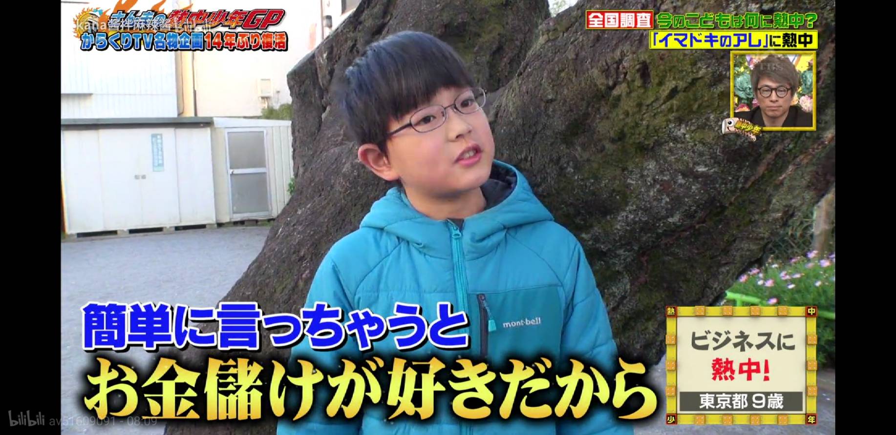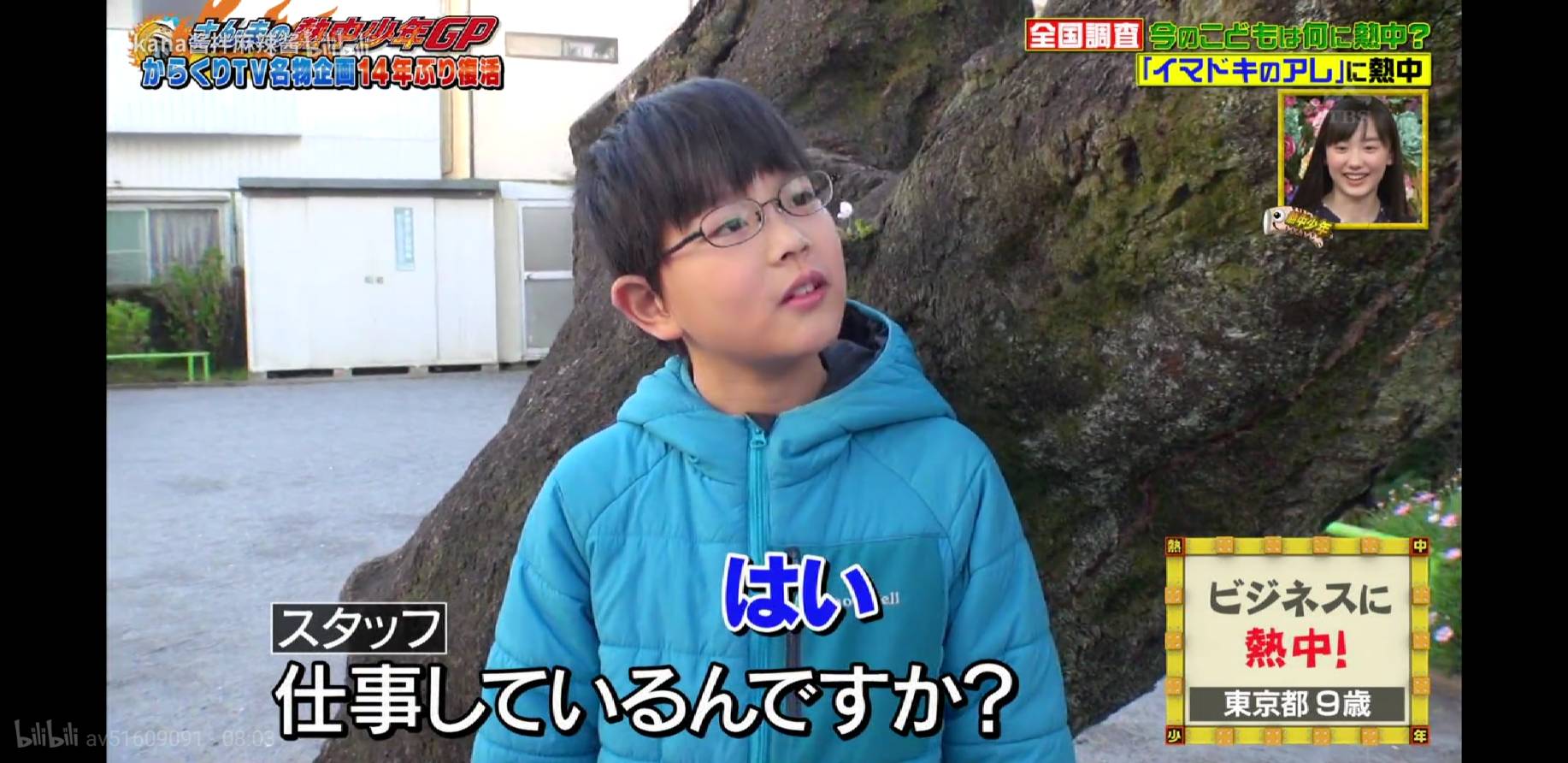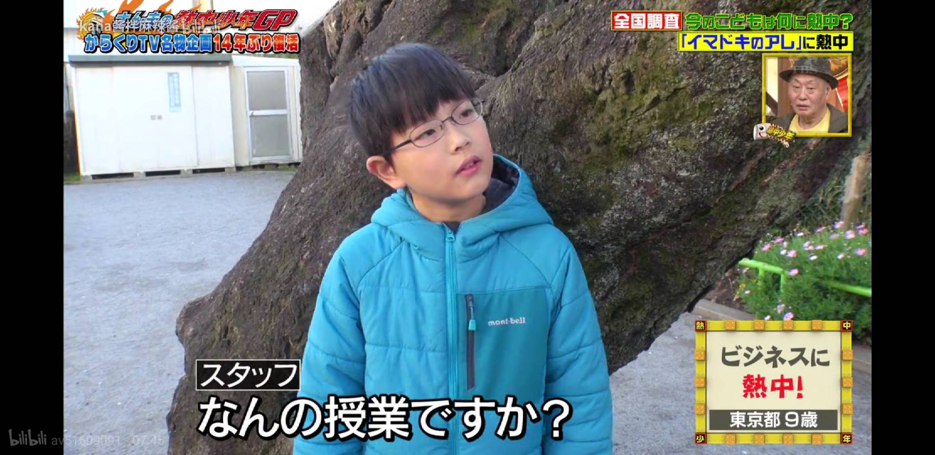 ▼日本節目《明石家さんまの熱中少年》訪問中,採訪了各地區少年們現在對什麼東西感興趣,當採訪到這名東京的9歲小朋友時,他說他正對「事業」很熱衷。