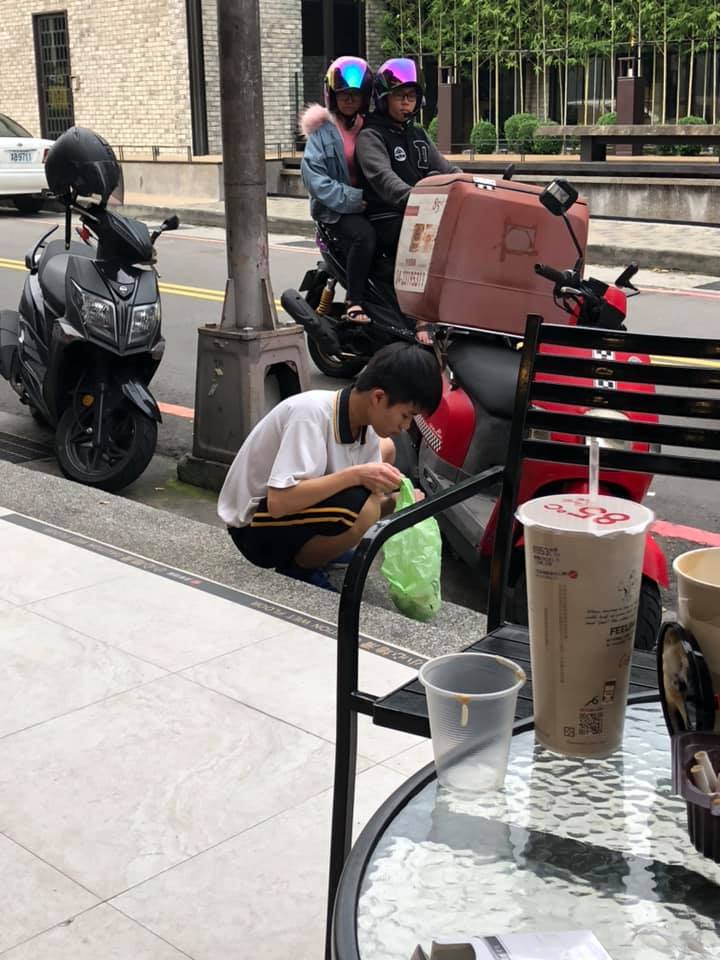 ▼原PO當時是在一間連鎖咖啡店前看到小男生,當時小男生穿著國中制服,就這樣蹲在路邊把眼前的菸蒂通通撿起來丟進袋子內!