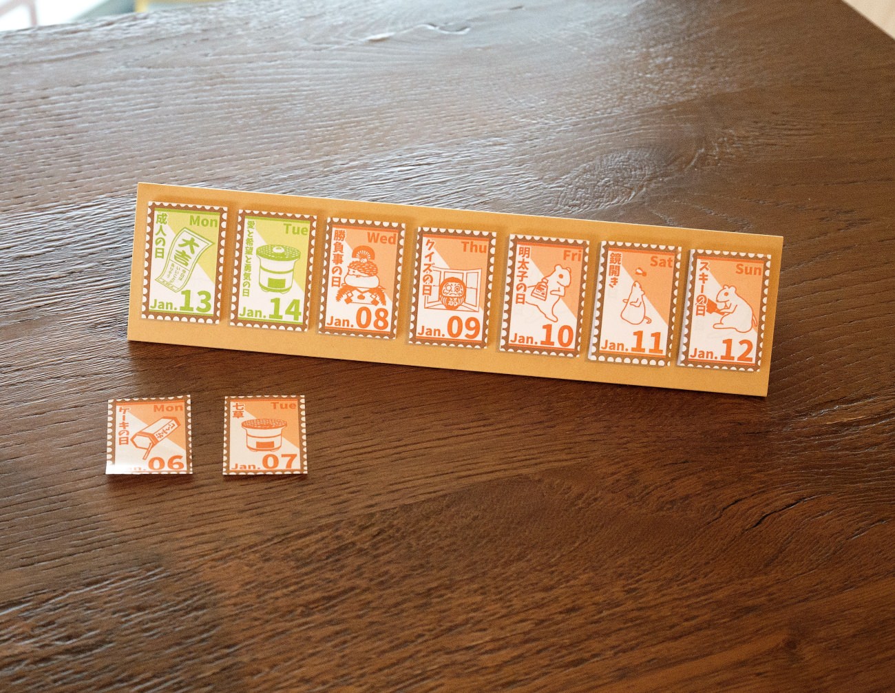 ▼「himekuri」桌上小日曆也有郵票風款,也是一週會換一次顏色!完全照顧到了喜歡收集郵票的粉絲。