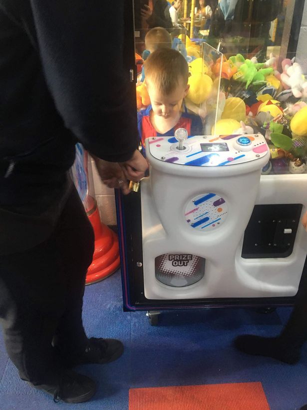 ▼英國一位3歲的弟弟「諾亞(Noah)」日前跟媽媽還有雙胞胎兄弟一起到遊樂中心玩,太想要泰迪熊的他直接趁媽媽不注意,直接鑽到夾娃娃機裡、結果受困其中。