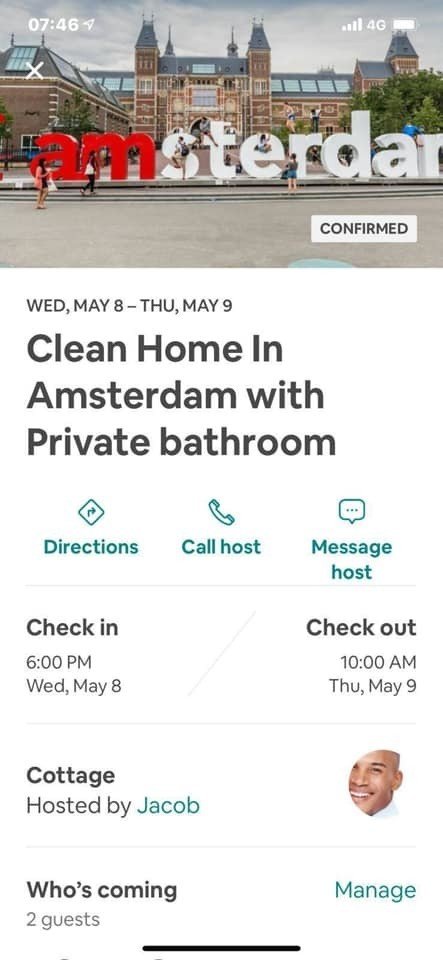 ▼2019年5月,這名遊客班(Ben Speller)為了到阿姆斯特丹看足球賽,通過Airbnb預定了當地的一間住宿,房屋介紹中寫著「在阿姆斯特丹,有私人浴室的乾淨房子」。看完床鋪特寫照片,班預定了房間。