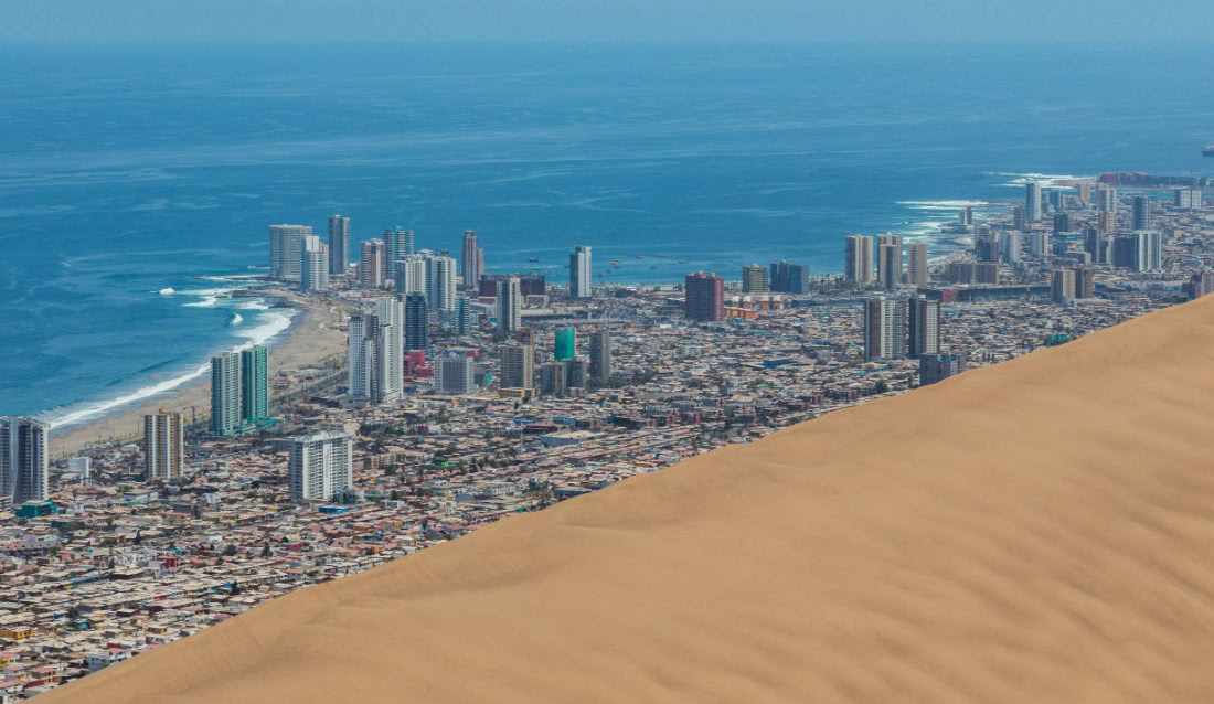 ▼雖然地處沙漠,但是伊基克是一個擁有超過20萬人口的城市。這是因為伊基克是智利北部最重要的港口,也是智利塔拉帕卡大區的首府,它還擁有美洲第二、南美洲最大的自由貿易區。