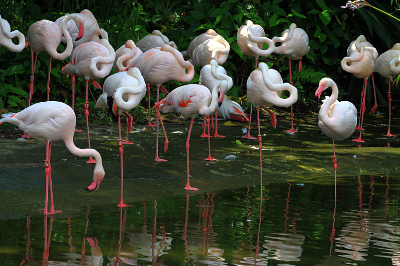 這隻紅鶴的內心一定住著一個慵懶的靈魂吧,才會做出如此特別的舉動,雖然超衝擊,但是也有點可愛呢!